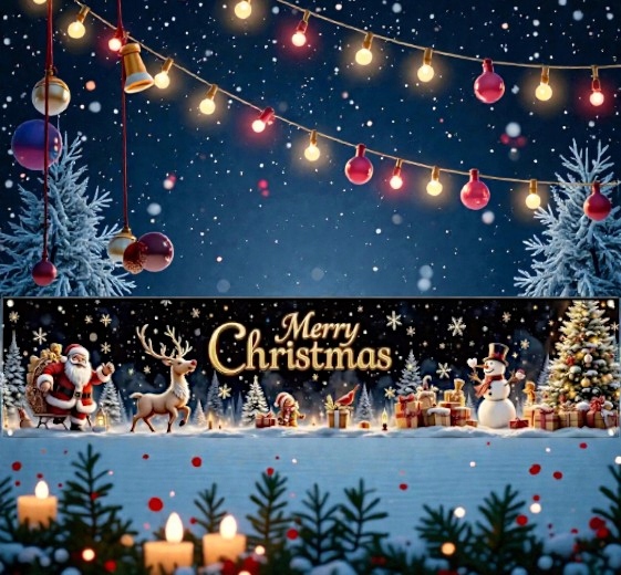 Stwórz magiczną, świąteczną atmosferę w swoim domu i ogrodzie dzięki wyjątkowemu banerowi bożonarodzeniowemu.