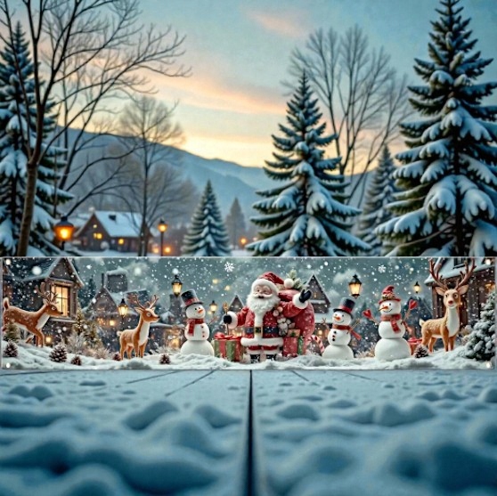 ✅ Piękny nadruk 2D - motywy Świętego Mikołaja, bałwany, prezenty.