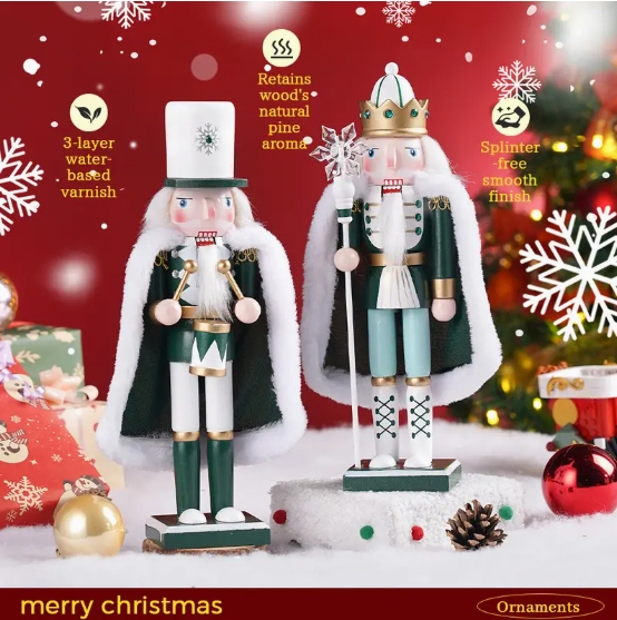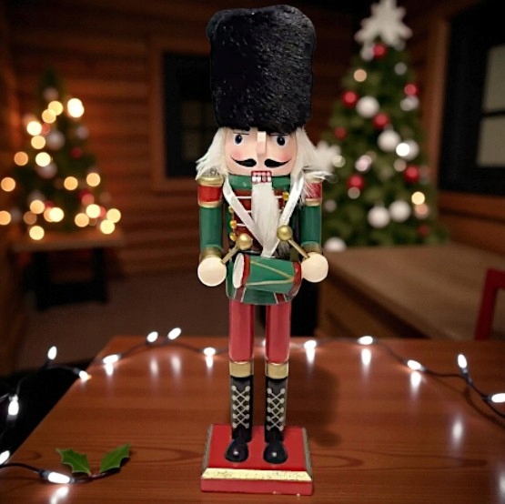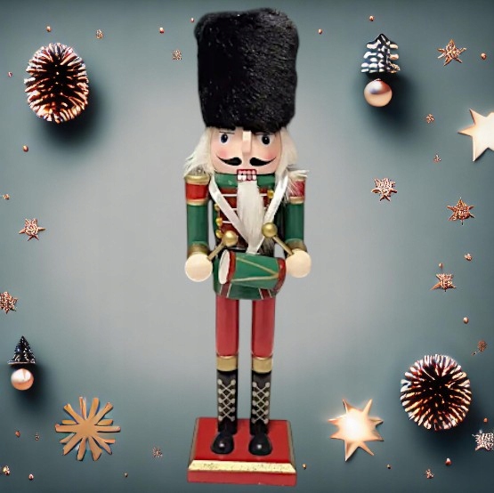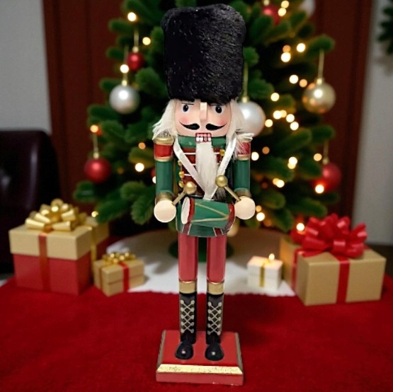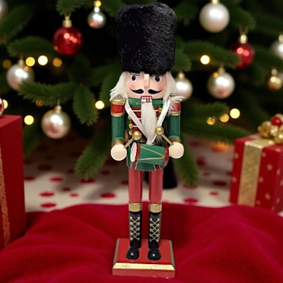 Wprowadź do swojego świątecznego wystroju nutę klasyki i radosnych kolorów dzięki eleganckiemu Dziadkowi do Orzechów w zielono-czerwonej odsłonie. Ten efektowny żołnierz, zdobiony dekoracyjnym bębenkiem i charakterystyczną czarną bermycą, zachwyca detalami i tworzy magiczną atmosferę świąt.