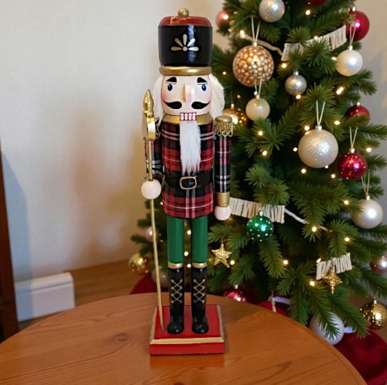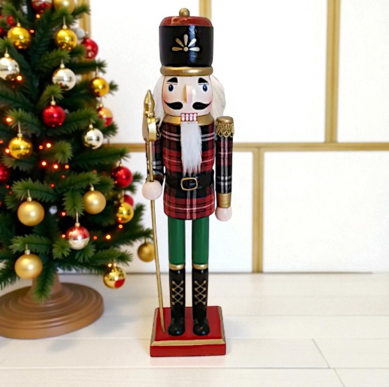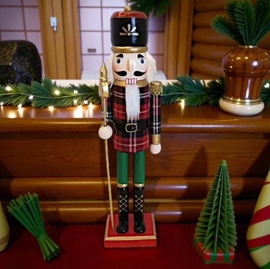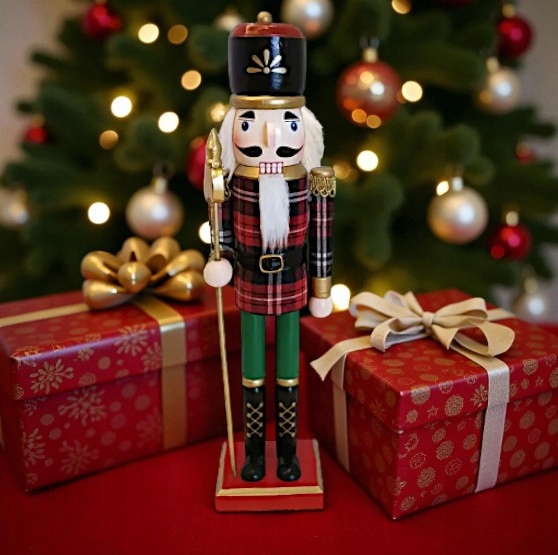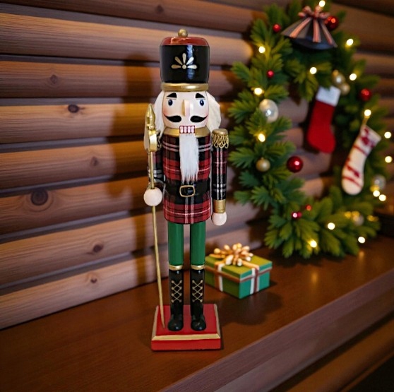 Dziadek do Orzechów w szkockiej kracie to elegancka i ponadczasowa dekoracja, która wprowadzi do Twojego domu ciepło, tradycję i świąteczną magię. Jego wyjątkowy wygląd oraz staranne, ręczne wykonanie sprawią, że stanie się ozdobą, do której będziesz wracać co roku.