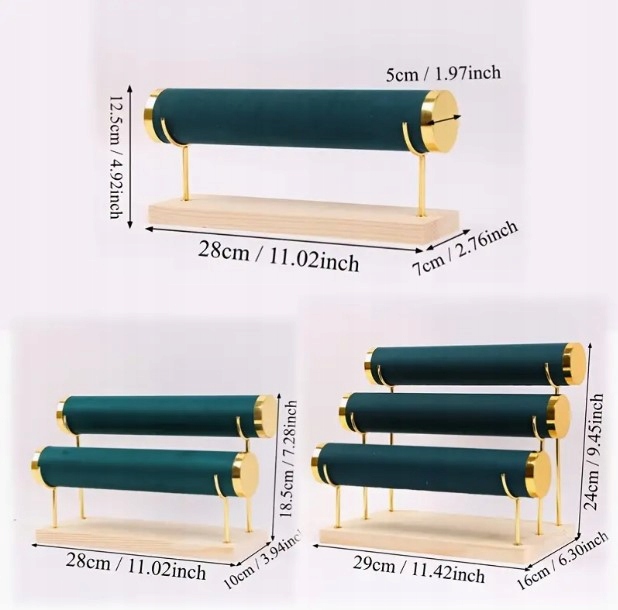 ELEGANCKI EKSPOZYTOR STOJAK NA BIŻUTERIĘ ZEGARKI BRANSOLETKI 1 POZIOM ZIELONY