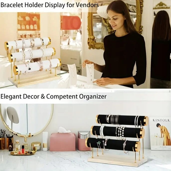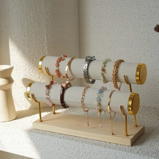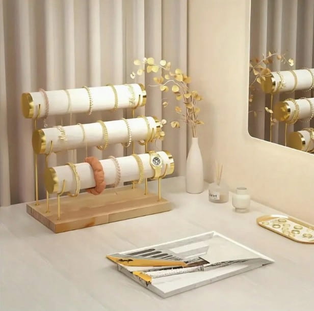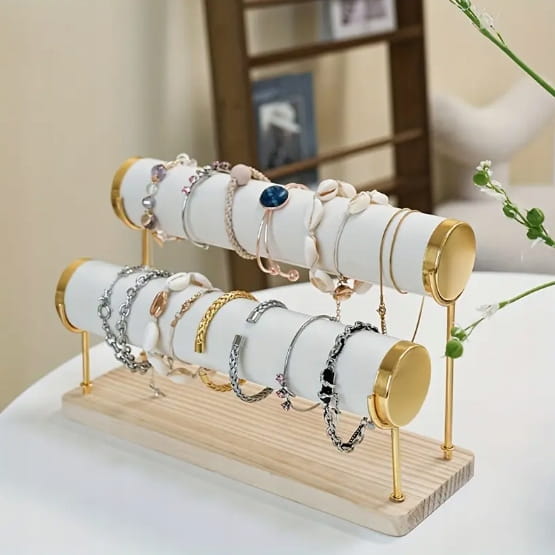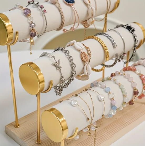 Elegancki stojak na biżuterię to niezbędny gadżet dla każdej kobiety, która chce zrobić porządek w swojej kolekcji bransoletek, zegarków oraz innej biżuterii i wyeksponować je w estetyczny i luksusowy sposób. Już nigdy więcej Twoja biżuteria nie będzie się plątać, a Ty będziesz mieć szybki i łatwy do niej dostęp.