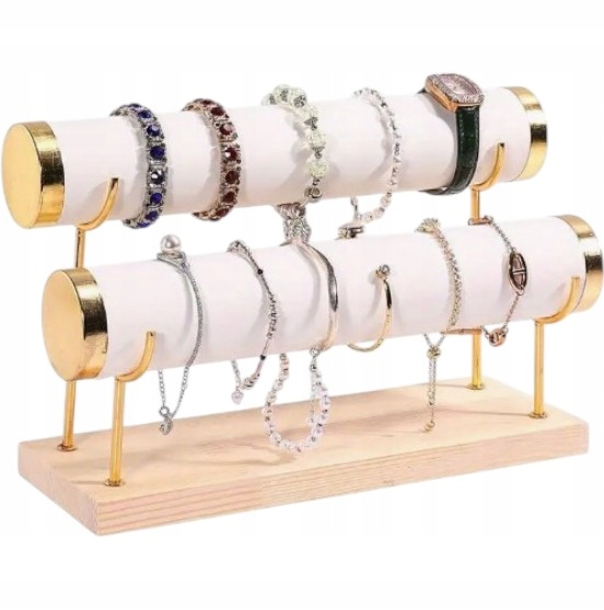 EKSPOZYTOR STOJAK NA BIŻUTERIĘ ZEGARKI BRANSOLETKI 2 POZIOMY BIAŁY prezent