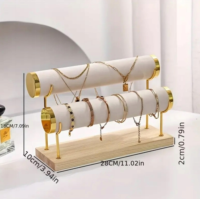 ELEGANCKI EKSPOZYTOR STOJAK NA BIŻUTERIĘ ZEGARKI BRANSOLETKI 2 POZIOMY AKSAMITNY BIAŁY
