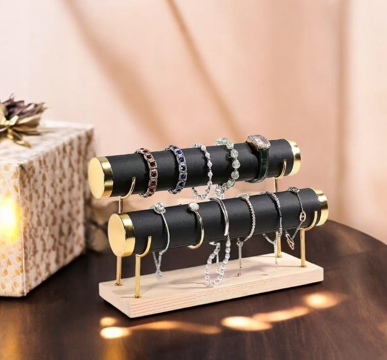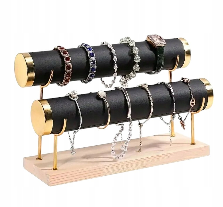 EKSPOZYTOR STOJAK NA BIŻUTERIĘ ZEGARKI BRANSOLETKI 2 POZIOMY CZARNY
