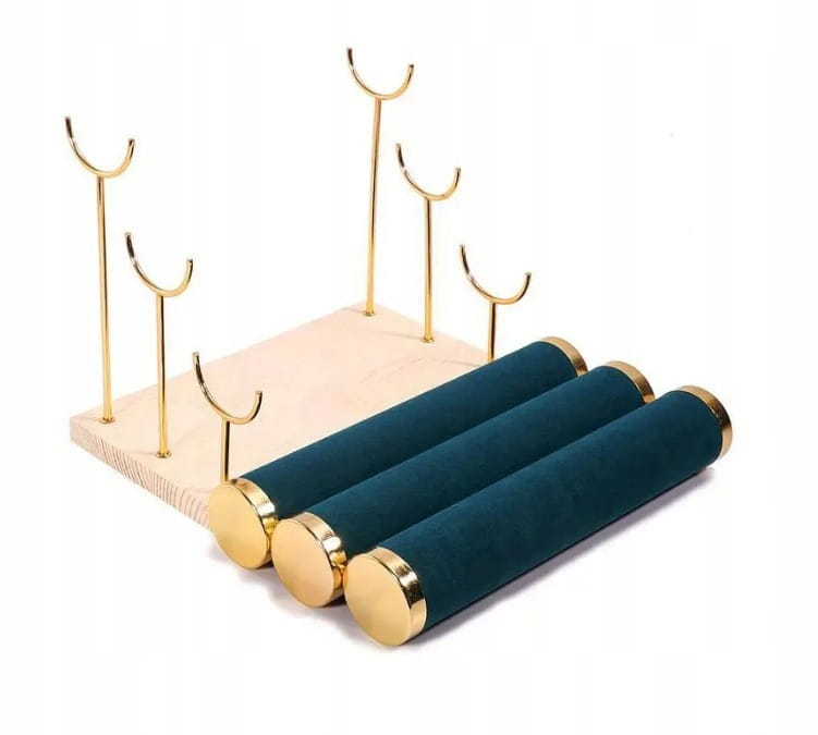 Efektowny ekspozytor do prezentacji i przechowywania biżuterii, w szczególności bransoletek i zegarków, ale nada się również do łańcuszków.