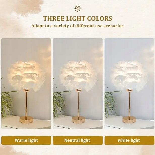 ✅ Rodzaj produktu: lampa stołowa z kloszem z szarych piór