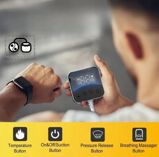 Korzystając z przewodowego pilota, możesz łatwo dostosować siłę ssania i obniżyć ciśnienie samodzielnie, bez potrzeby pomocy innych. To osobisty masażer do bańkowania przeznaczony do użytku domowego.