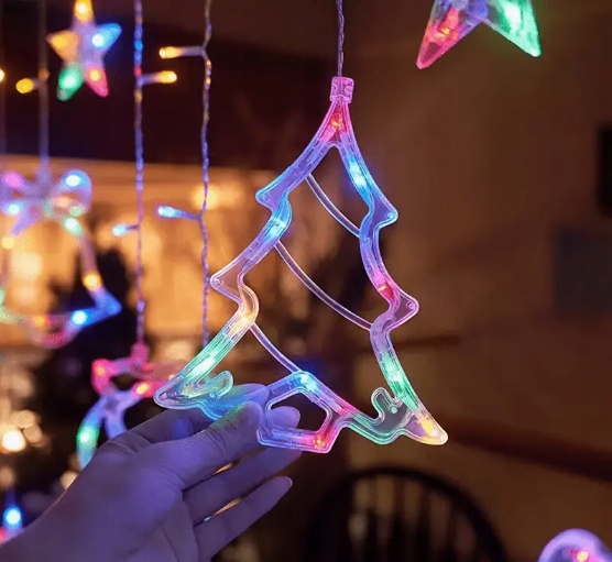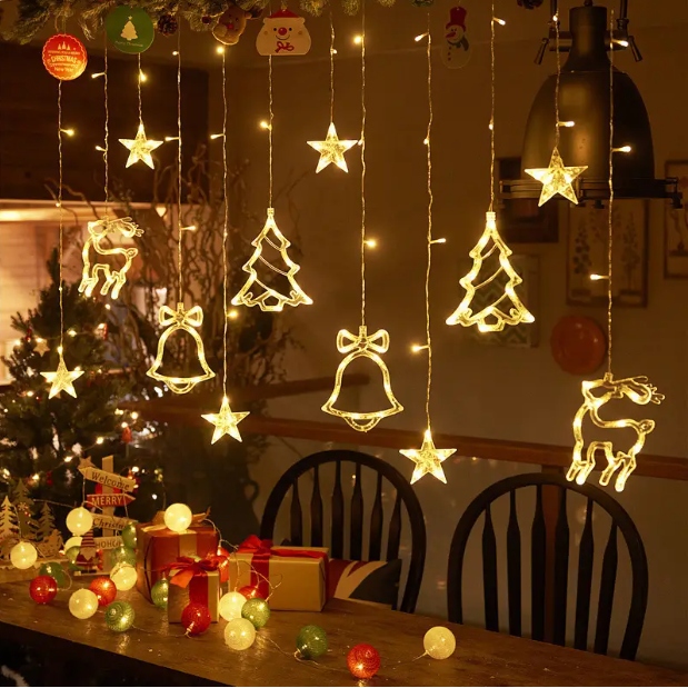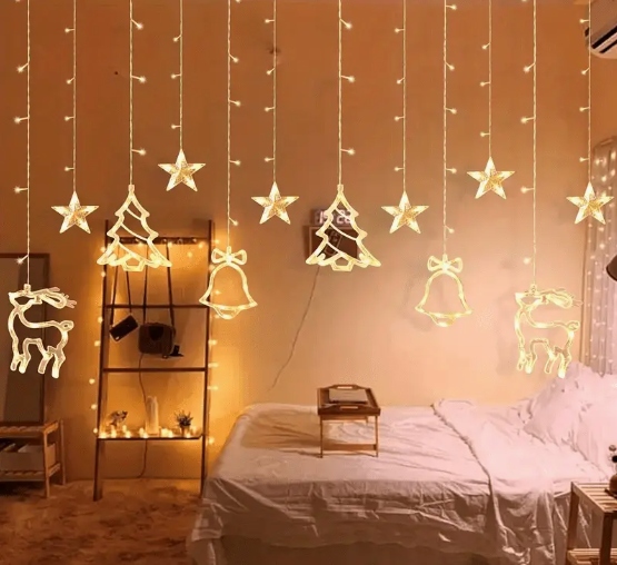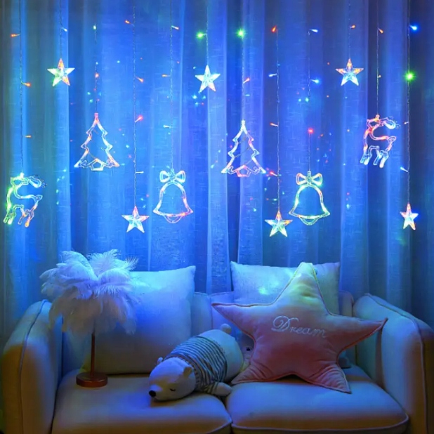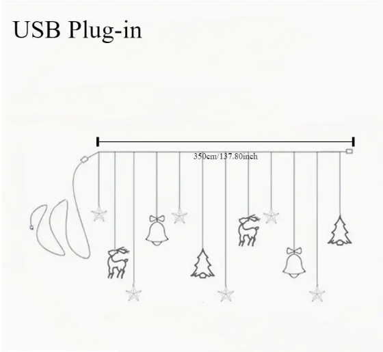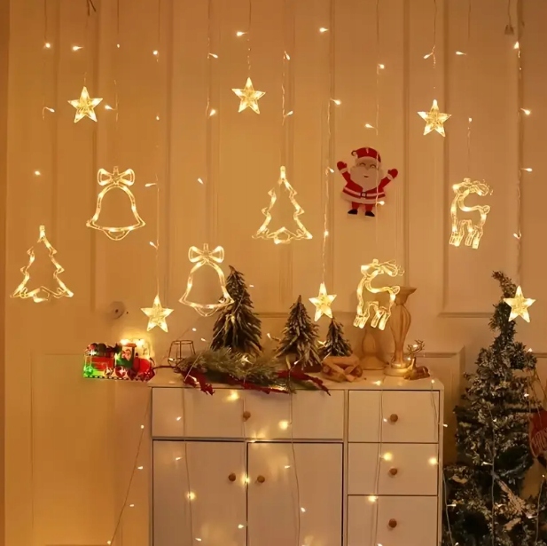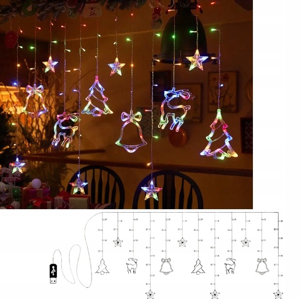 GIRLANDA KURTYNA ŚWIETLNA LAMPKI CHOINKOWE CHOINKA RENIFER DZWONKI 3.5M