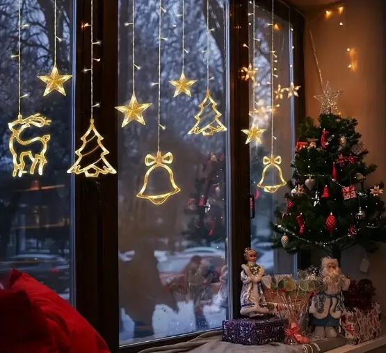 Ta wyjątkowa świąteczna girlanda LED z uroczymi motywami choinki, renifera i dzwonków to doskonała dekoracja na Boże Narodzenie, która rozświetli każde wnętrze barwnym blaskiem. Idealna do sypialni, salonu, na ścianę, choinkę, żyrandol lub strop – sprawdzi się też podczas wesel, imprez i zimowych przyjęć.