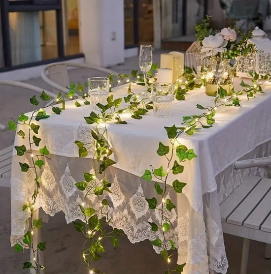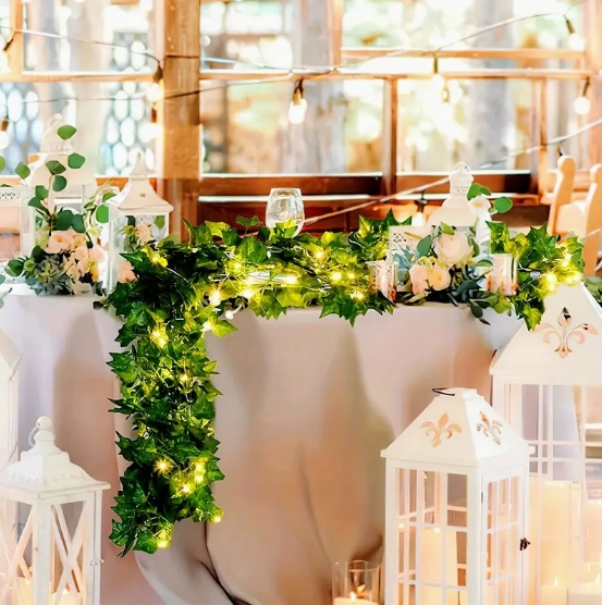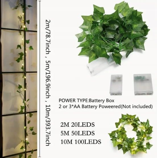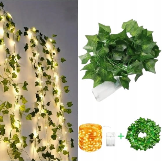 Girlanda Sztuczny Bluszcz LED stworzy niesamowitą atmosferę w Twoim domu, ogrodzie lub tarasie, dekoracja na wesele jak i do sypialni. Dekoracyjna girlanda zawiera 100 diod LED i świeci białym ciepłym światłem.