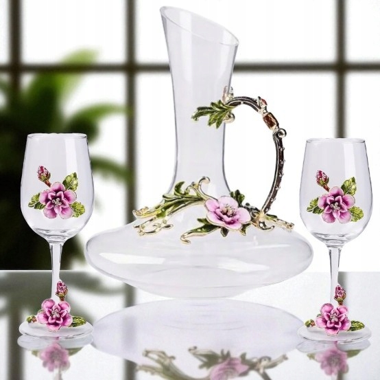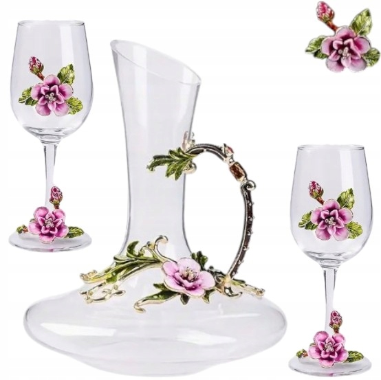 KARAFKA + 2 KIELISZKI DO WINA KWIAT ŚLIWY KIELISZEK ZESTAW PREZENT ŚWIĘTA