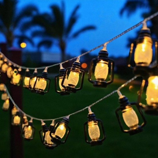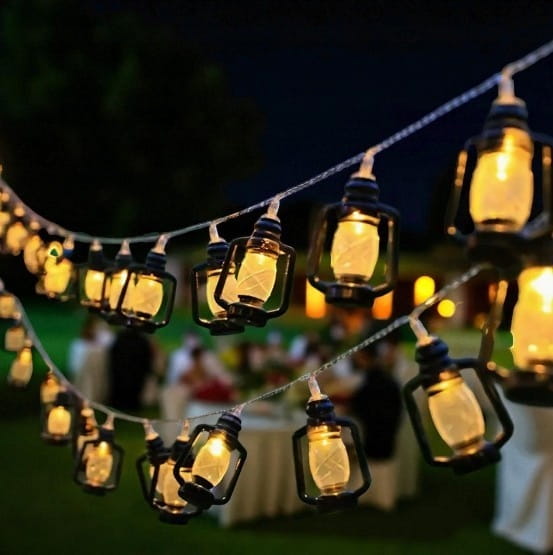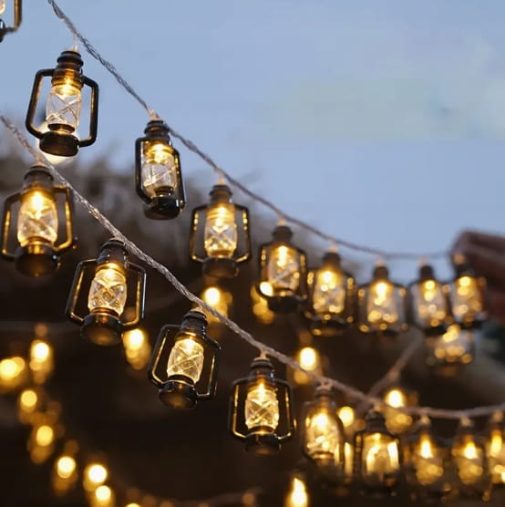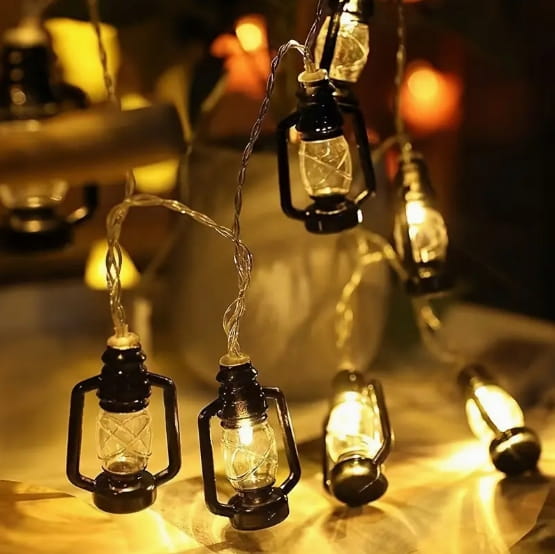 Girlanda stylizowana na antyczne lampy naftowe. Klasyczny kształt latarni, ciepły, przytłumiony blask imitujący efekt palącej się świecy, a jednocześnie bezpieczne i ekologiczne wykonanie.