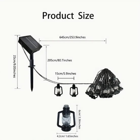 ZEWNĘTRZNE LAMPKI SOLARNE LATARNIA RETRO 10m