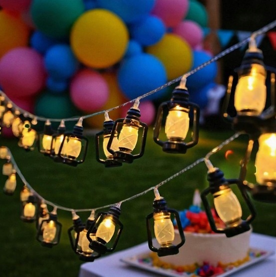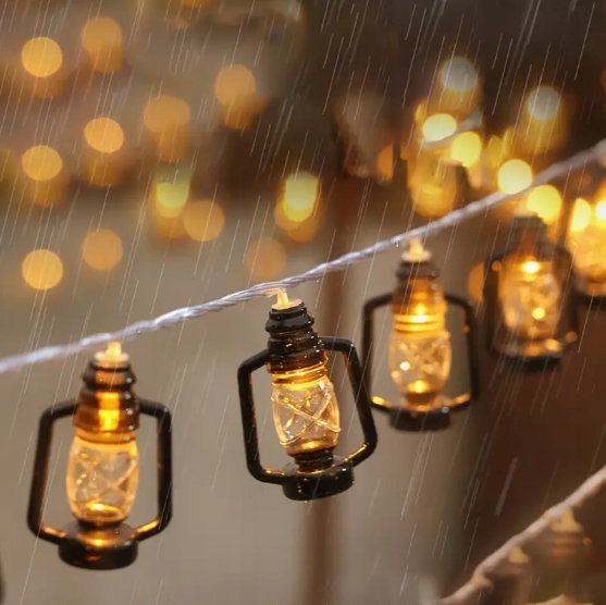 Girlanda stylizowana na antyczne lampy naftowe. Klasyczny kształt latarni, ciepły, przytłumiony blask imitujący efekt palącej się świecy, a jednocześnie bezpieczne i ekologiczne wykonanie.