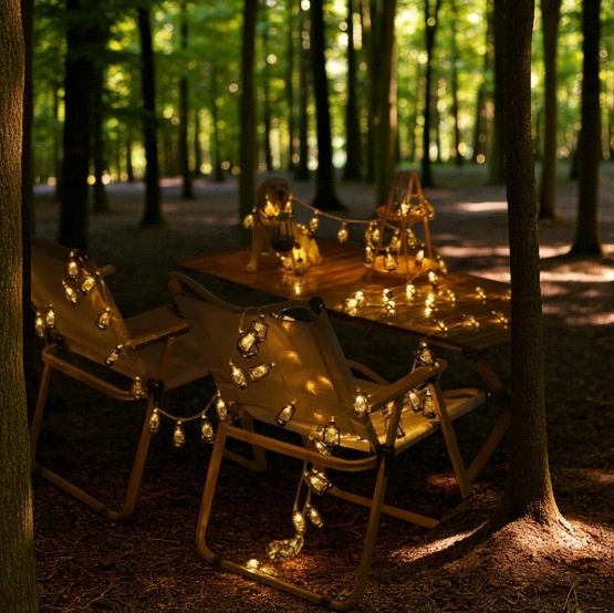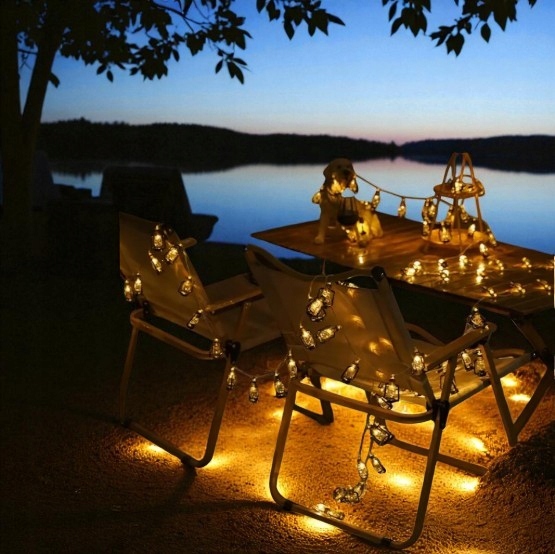 - dekoracja stołu ogrodowego podczas wieczornego grillowania