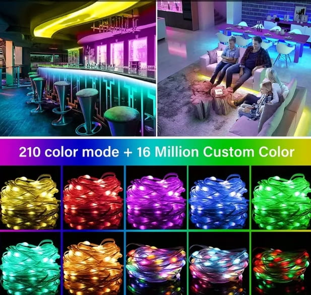 Inteligentne Lampki Świąteczne | LED 20m | RGB | Sterowanie Aplikacją | 16 Milionów Kolorów | 210 Trybów | USB