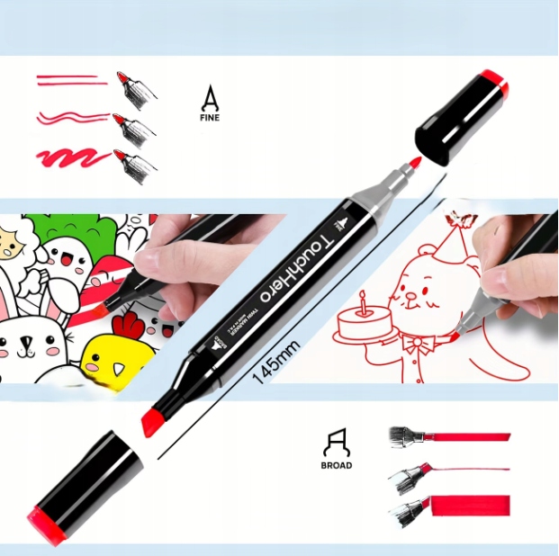 ✅ Dwustronne markery – cienka i szeroka końcówka