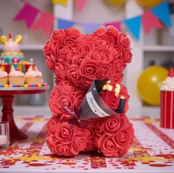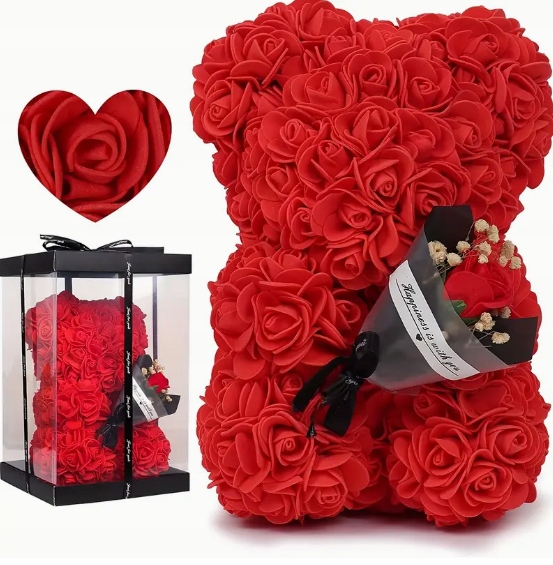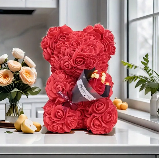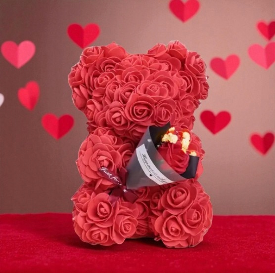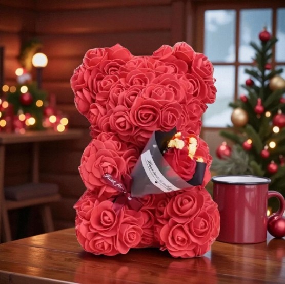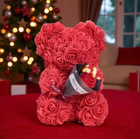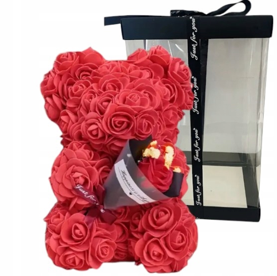 Elegancki, romantyczny i wyjątkowo kreatywny upominek, który zachwyci każdą obdarowaną osobę. Ten uroczy miś wykonany jest ze sztucznej pianki w kształcie róż, tworząc efektowną, trwałą i niezwykle estetyczną dekorację. Idealny jako prezent na Walentynki, Dzień Matki, urodziny, rocznice, Dzień Kobiet, wesele, a także jako piękny upominek świąteczny czy dodatek do bukietu.