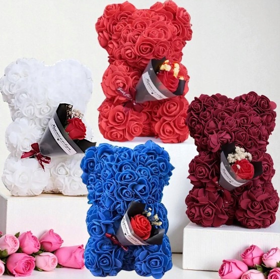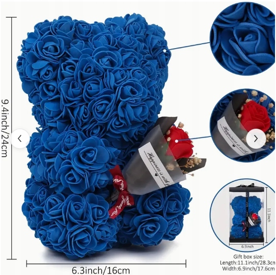 Elegancki, romantyczny i wyjątkowo kreatywny upominek, który zachwyci każdą obdarowaną osobę. Ten uroczy miś wykonany jest ze sztucznej pianki w kształcie róż, tworząc efektowną, trwałą i niezwykle estetyczną dekorację. Idealny jako prezent na Walentynki, Dzień Matki, urodziny, rocznice, Dzień Kobiet, wesele, a także jako piękny upominek świąteczny czy dodatek do bukietu.