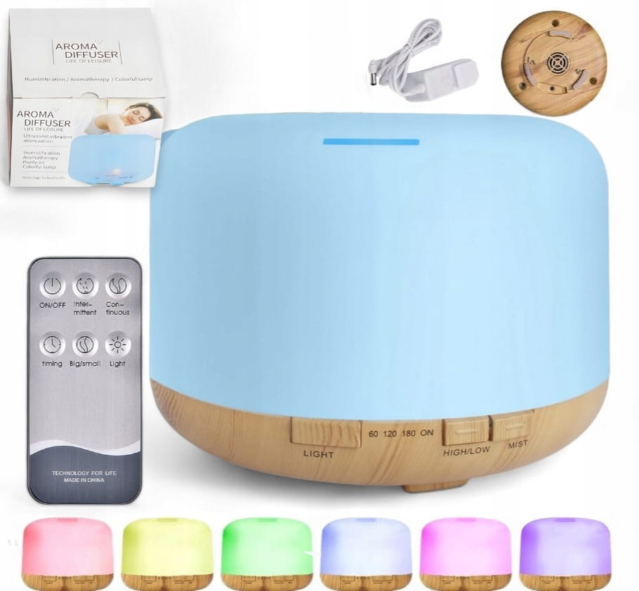 - aromaterapia - po dodaniu kilku kropel olejku eterycznego do wody. Wiele trybów nebulizatora mgły (przerywany 10S/ciągły), przełączany tryb dużej/małej mgły)