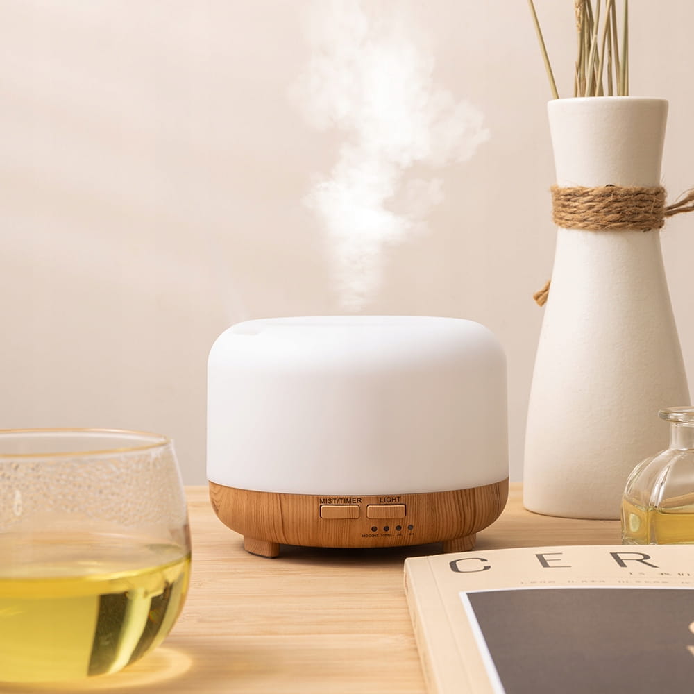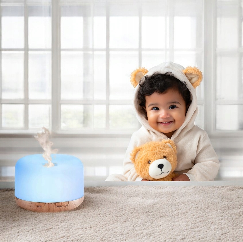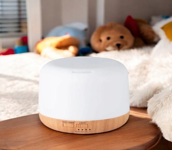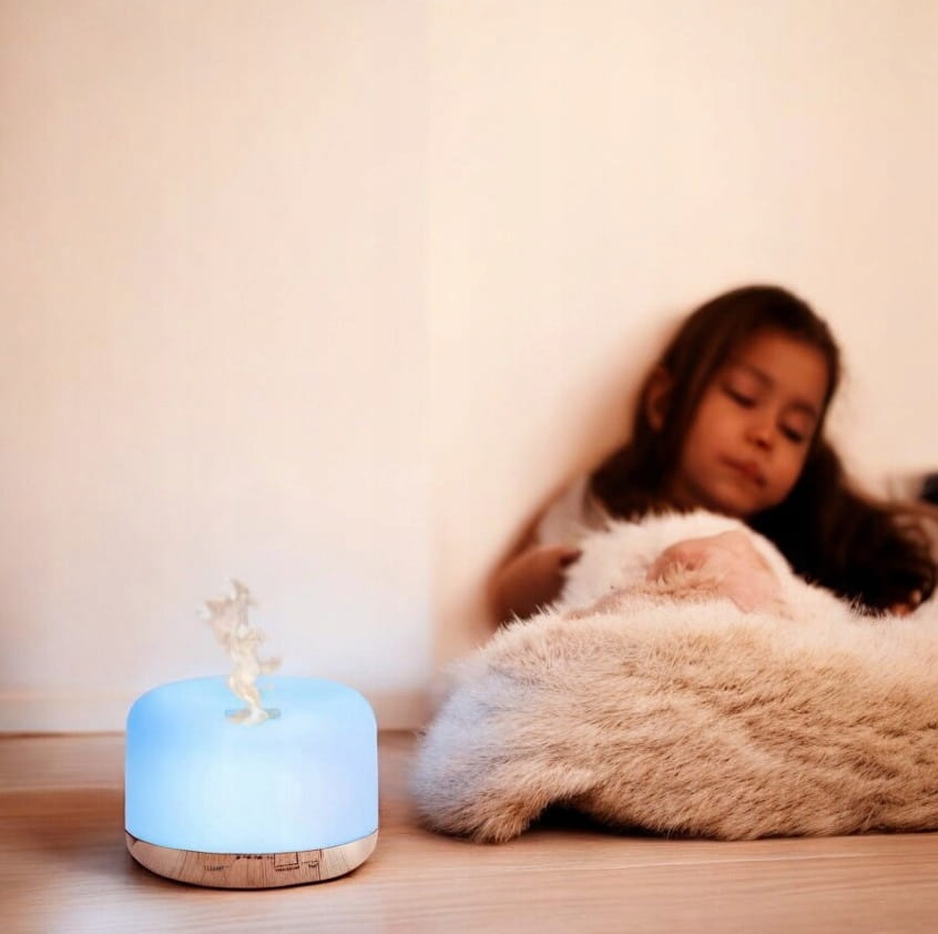 Nawilżacz z olejkiem zapachowym dodaje wilgoci i zapachu do powietrza w sypialni, aby pomóc ci lepiej spać, mniej kaszleć, ukryć zapach zwierząt domowych lub palenia i złagodzić suche zatoki.