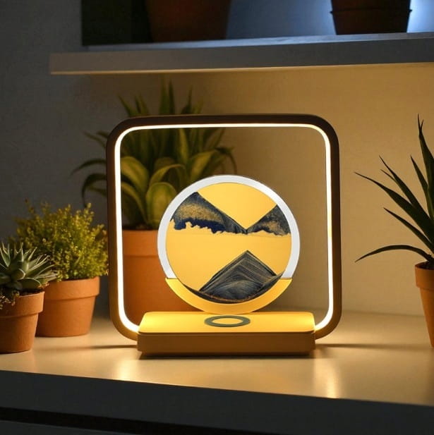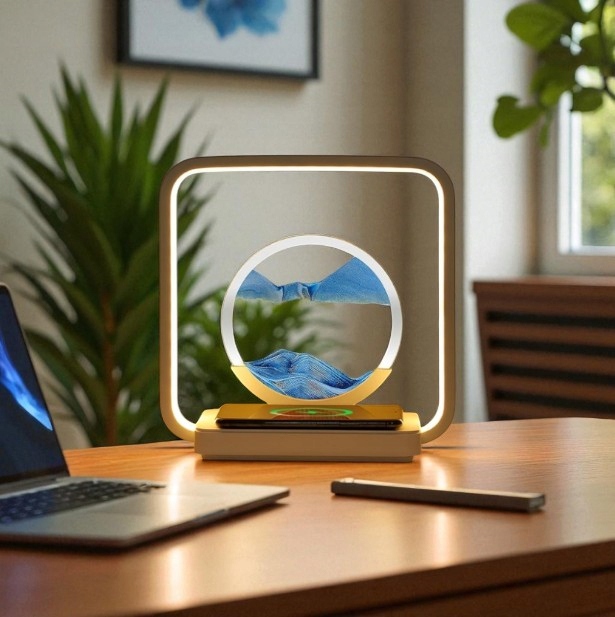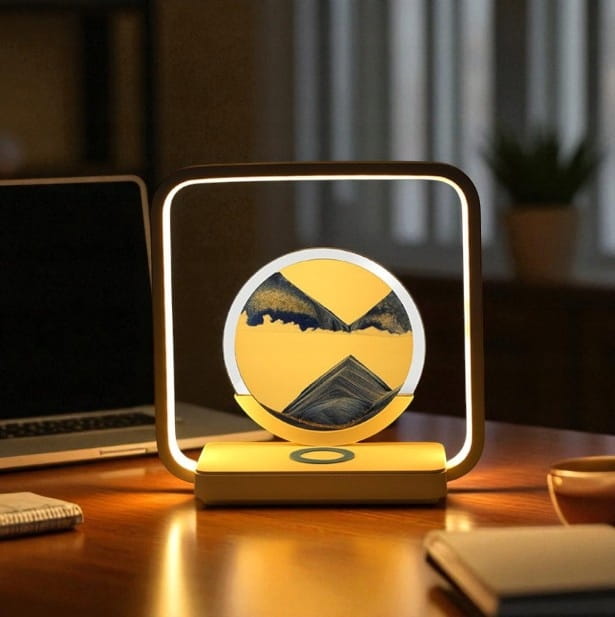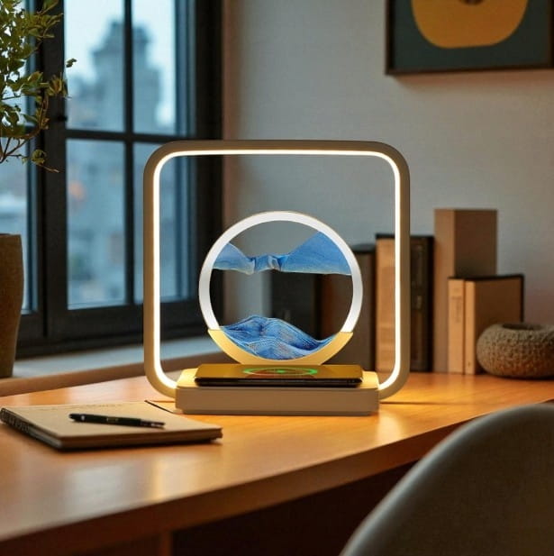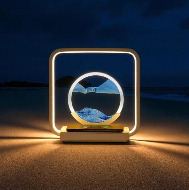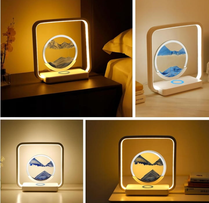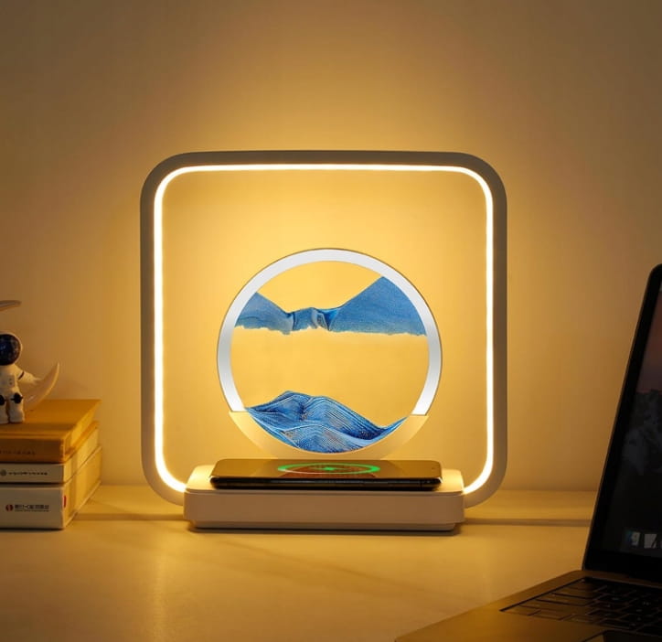 ✅ Rodzaj produktu: Lampka stołowa LED z płynącym piaskiem i bezprzewodowym ładowaniem