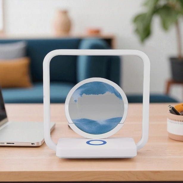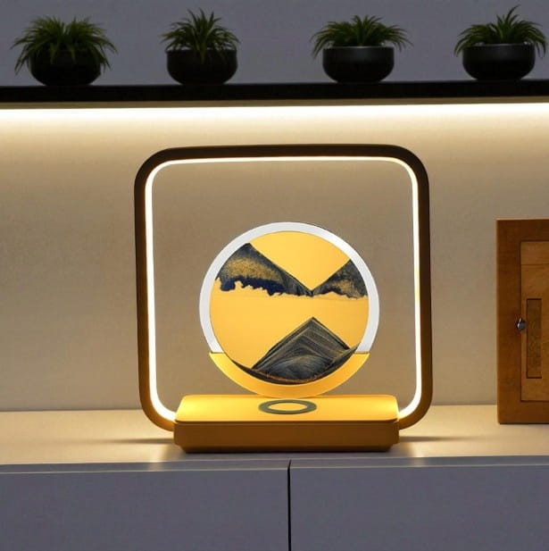 Działający na zasadzie ruchomego piasku efekt wizualny wprowadza harmonię i odprężeni, idealne do wyciszenia po intensywnym dniu.