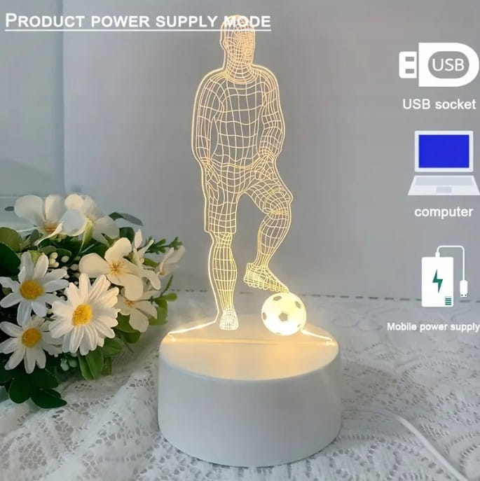 Nowoczesna lampka nocna 3D LED w kształcie Piłkarza