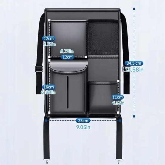 Dzięki temu organizerowi samochodowemu, utrzymanie porządku w aucie staje się proste. Wszystkie niezbędne rzeczy będą poukładane i zawsze na wyciągnięcie ręki.