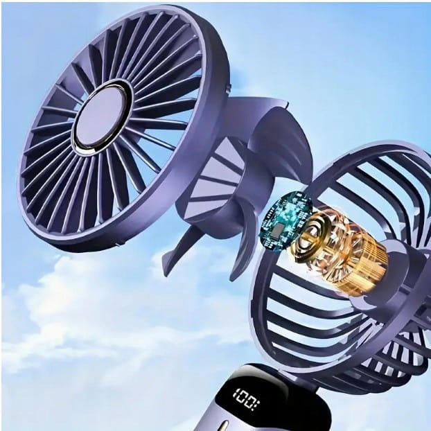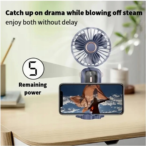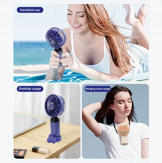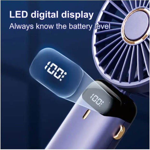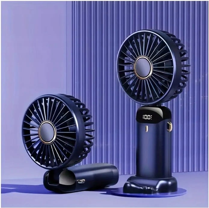 Najnowszy wentylator w kolorze niebieskim z wyświetlaczem cyfrowym z przewodem USB do wielokrotnego ładowania. Posiada 5-stopniową regulację prędkości wiatru, dzięki czemu możesz ustawić siłę nawiewu do swoich potrzeb. Ten lekki i przenośny wentylator chłodzący powietrze idealnie sprawdza się w upalne dni oraz w podróży oraz jest doskonały dla osób, które cenią sobie wygodę. Dzięki wbudowanemu wyświetlaczowi cyfrowemu możesz kontrolować poziom naładowania baterii i prędkość nawiewu a regulacja głowicy o 90 stopni daje możliwość ustawienia kierunku nawiewu