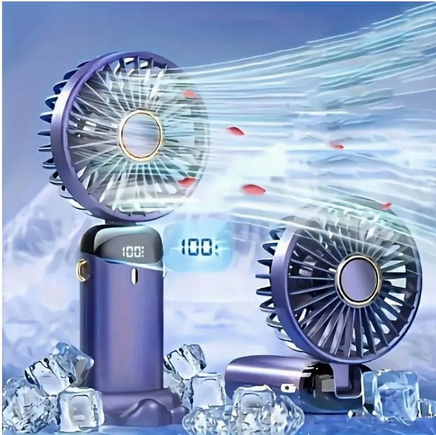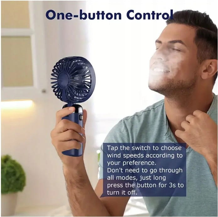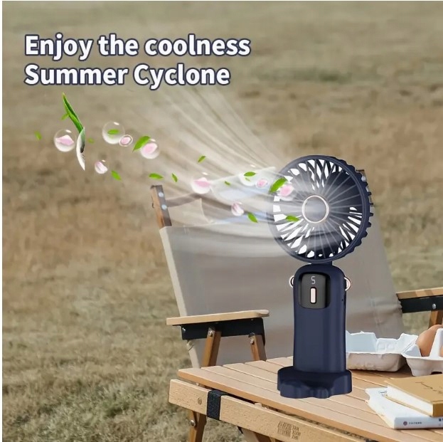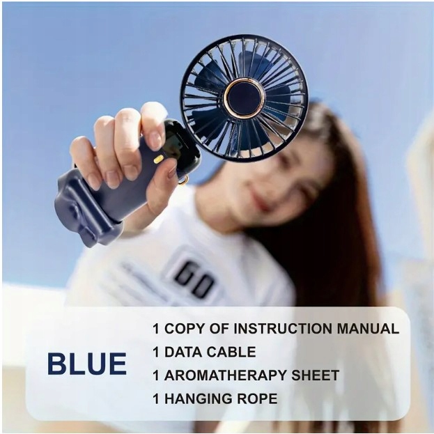 RĘCZNY WENTYLATOR, PRZENOŚNY MINI WIATRAK KIESZONKOWY Z 5-STOPNIOWĄ REGULACJĄ PRĘDKOŚCI NIEBIESKI