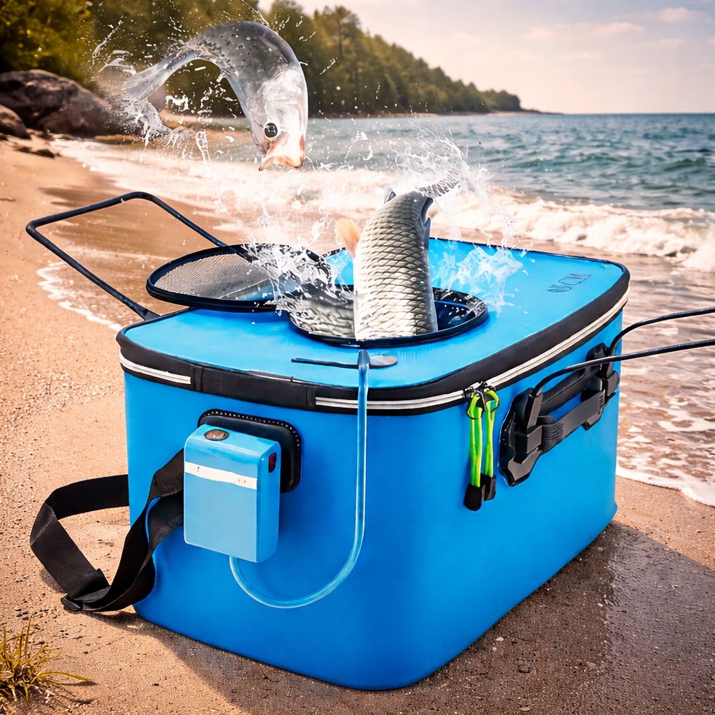 Pojemnik Wędkarski 50 cm Składany Torba na Ryby Żywiec Organizer z Pokrywą