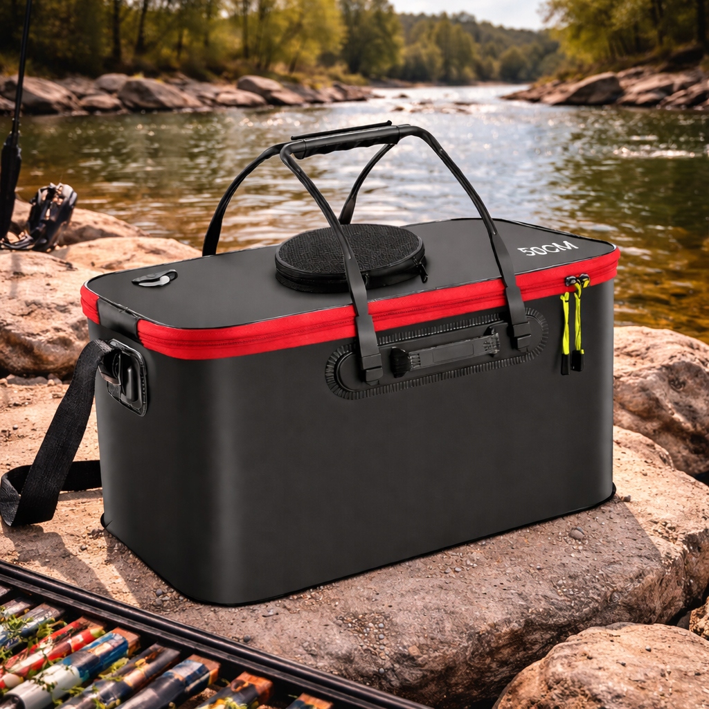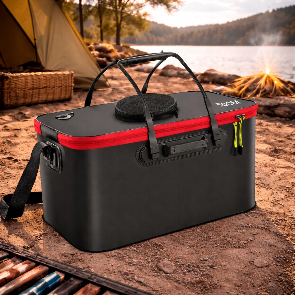 Pojemnik Wędkarski 50 cm Składany Torba na Ryby Żywiec Organizer z Pokrywą