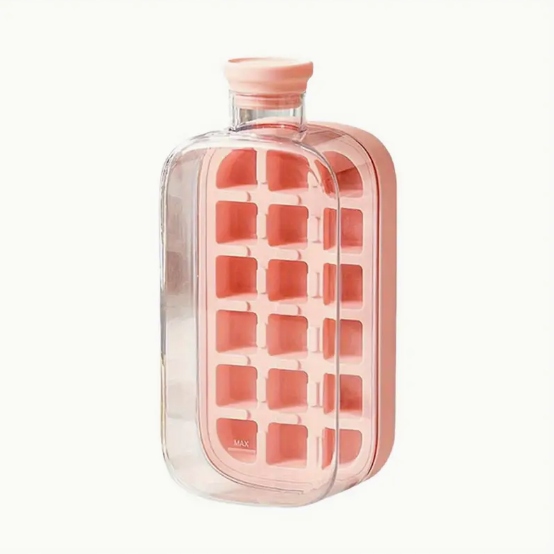 Pojemnik na lód forma butelka na wodę na kostki lodu kostkarka 2w1 RÓŻOWY