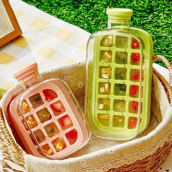 Ta wyjątkowa forma umożliwia łatwe i szybkie przygotowanie kostek lodu. Wlej swój ulubiony napój do butelki i ciesz się zimnym napojem podczas wakacji.