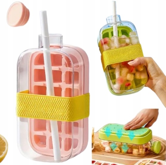 POJEMNIK NA LÓD 2W1 BUTELKA ZE SŁOMKĄ DO NAPOI Z LODEM