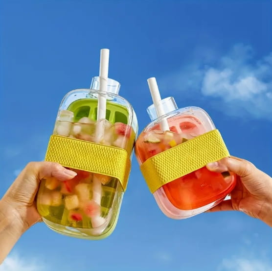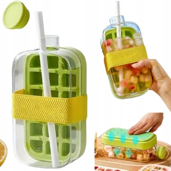 POJEMNIK NA LÓD 2W1 BUTELKA ZE SŁOMKĄ DO NAPOI Z LODEM