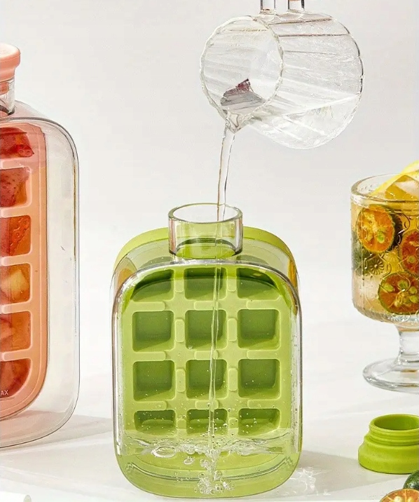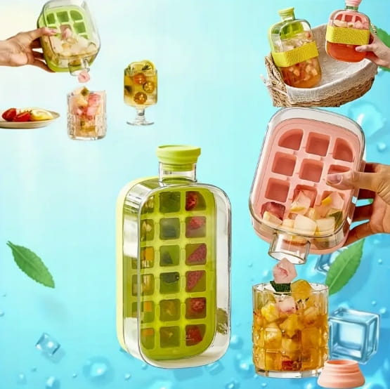 Ta wyjątkowa forma umożliwia łatwe i szybkie przygotowanie kostek lodu. Wlej swój ulubiony napój do butelki i ciesz się zimnym napojem podczas wakacji.