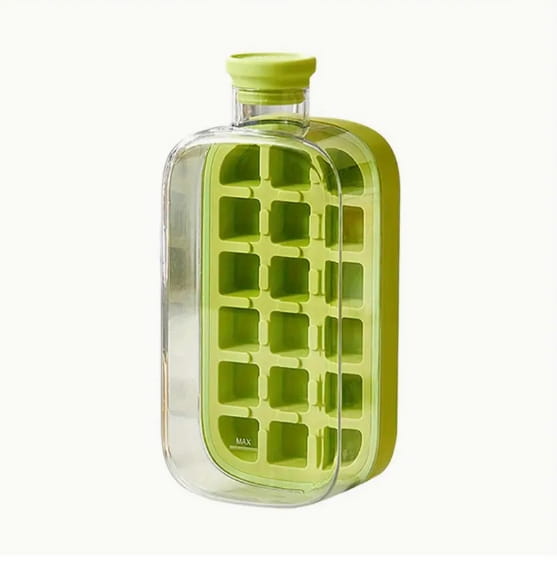 Pojemnik na lód forma butelka na wodę na kostki lodu kostkarka 2w1 ZIELONY