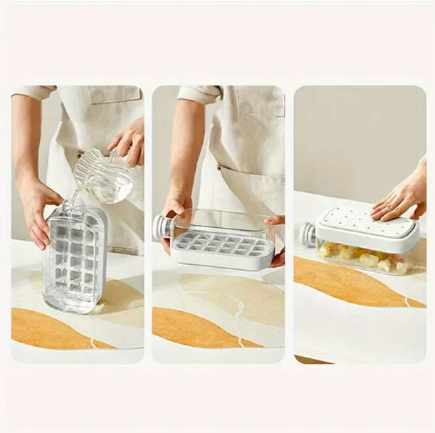 Pojemnik może pomieścić 18 kostek lodu na raz, wystarczy wlać wodę maksymalnie do wyznaczonego miejsca pojemnika, a następnie zamknąć butelkę i poziomo włożyć do zamrażalnika.
