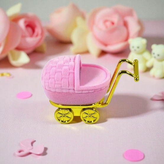 Pudełko na Pierścionek w Kształcie Wózka Dziecięcego – Kolor Różowy