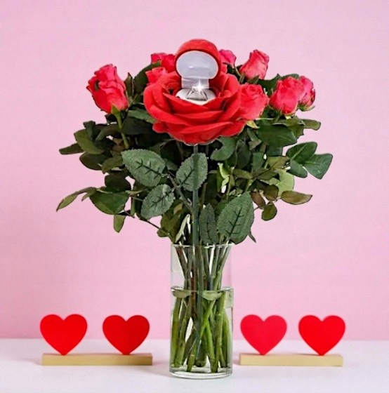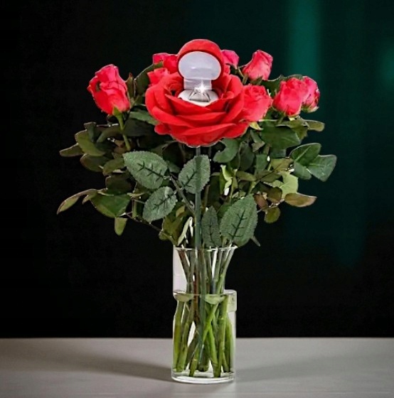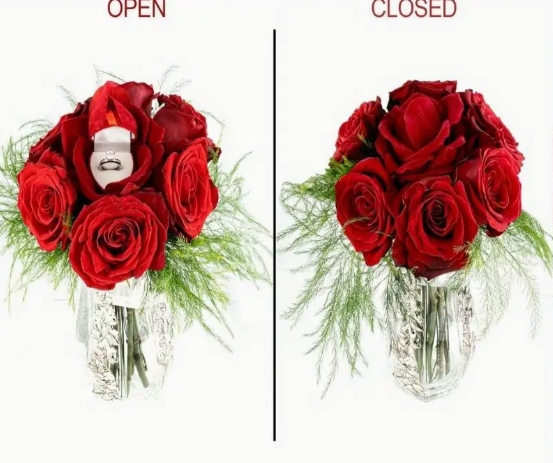 Wystarczy wsunąć pudełko w kształcie róży pomiędzy inne kwiaty w bukiecie i...