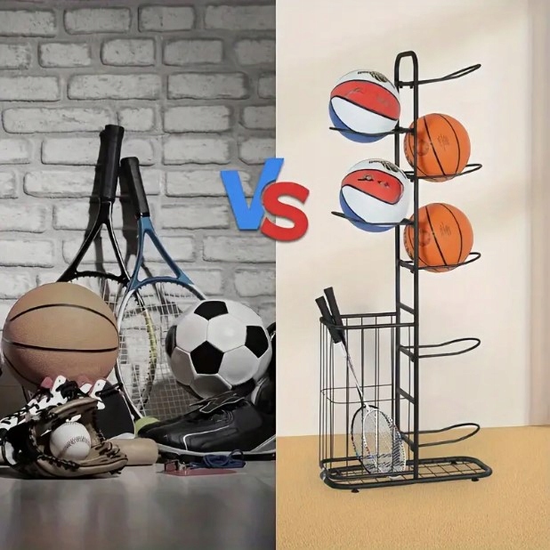 wielopoziomowy kosz do przechowywania artykułów sportowych