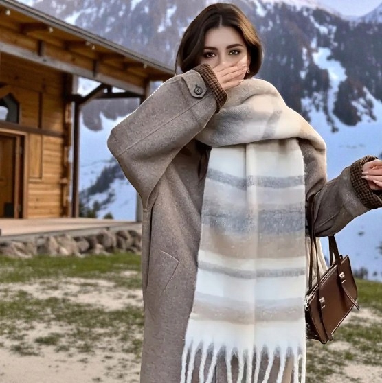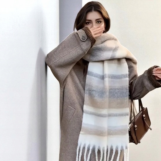 Zanurz się w miękkości i elegancji tego wyjątkowego szalika w odcieniu beżowym w modne paski. To idealny dodatek na chłodne dni, który nie tylko chroni przed wiatrem i zimnem, ale też dodaje klasy każdej stylizacji.