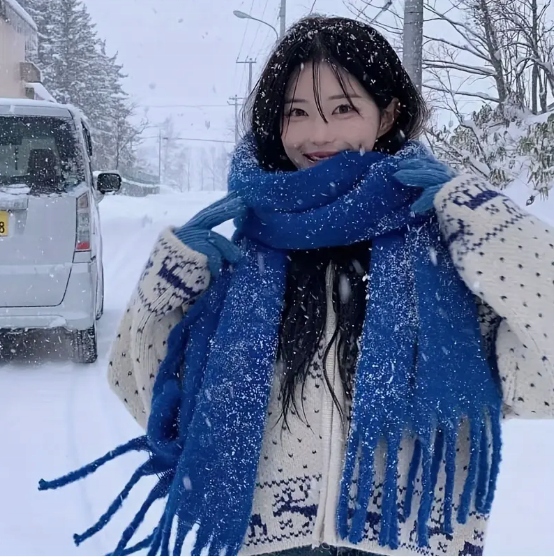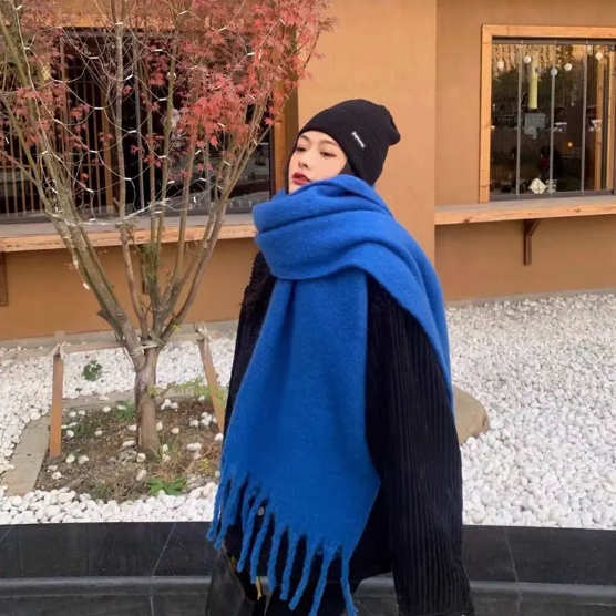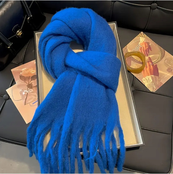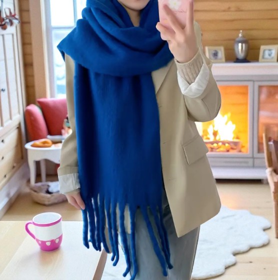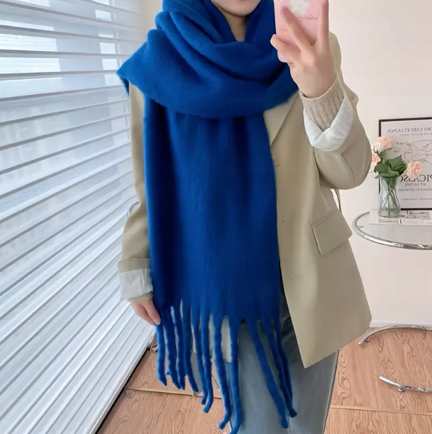 Miękki Zimowy Szalik z Frędzlami - Królewski Niebieski | 190x28cm | Ciepły i Elegancki