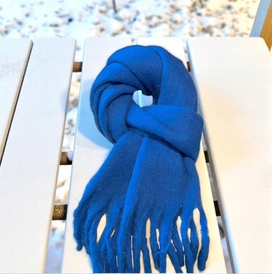 Zanurz się w miękkości i elegancji tego wyjątkowego szalika w królewskim odcieniu niebieskiego. To idealny dodatek na chłodne dni, który nie tylko chroni przed wiatrem i zimnem, ale też dodaje klasy każdej stylizacji.