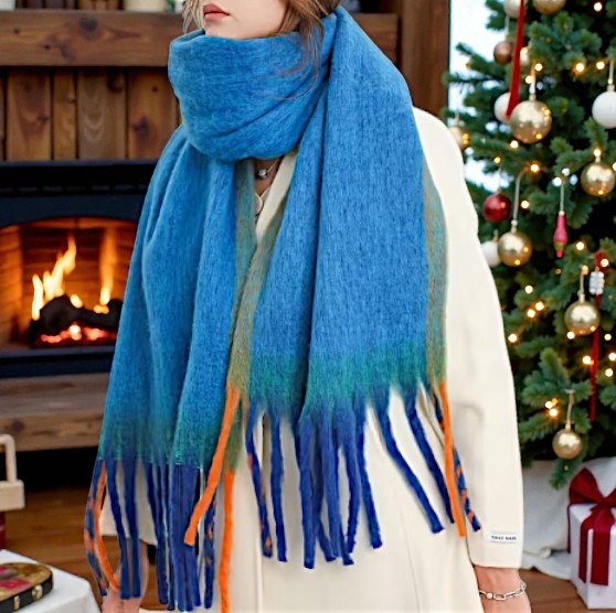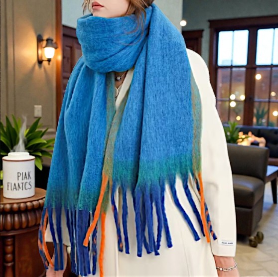 Miękki Zimowy Szalik z Frędzlami - Niebieski Ocean | 200x38cm | Ciepły i Elegancki