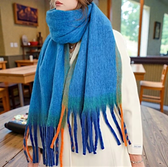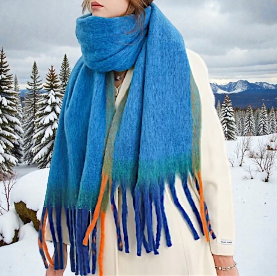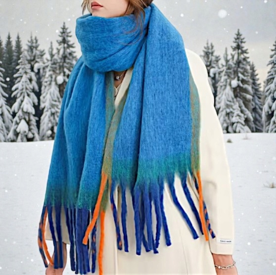 Zanurz się w miękkości i elegancji tego wyjątkowego szalika w odcieniu niebieskiego jak ocean. To idealny dodatek na chłodne dni, który nie tylko chroni przed wiatrem i zimnem, ale też dodaje klasy każdej stylizacji.