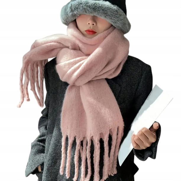 SZALIK DAMSKI SZAL CIEPŁY Z FRĘDZLAMI NA ZIMĘ GŁADKI RÓŻ PASTELOWY RÓŻOWY